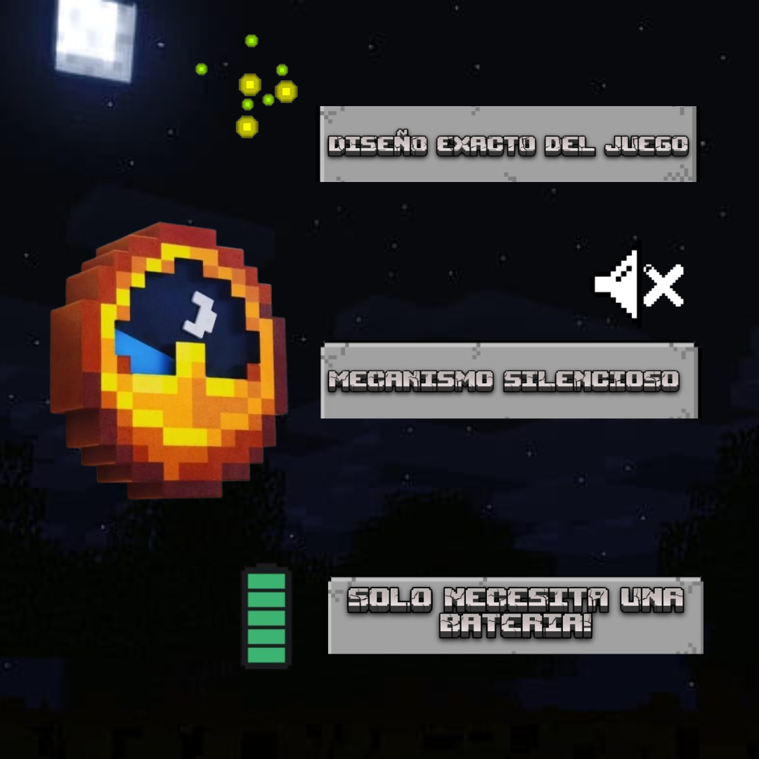 Al principio dudé porque pensé que sería un producto barato o frágil, pero cuando llegó me sorprendió. El reloj tiene muy buenos acabados, se nota resistente y luce igualito al ítem de Minecraft. Mi hijo está fascinado, lo puso al lado de su setup gamer. Llegó antes de lo esperado y bien protegido. 100% recomendado.